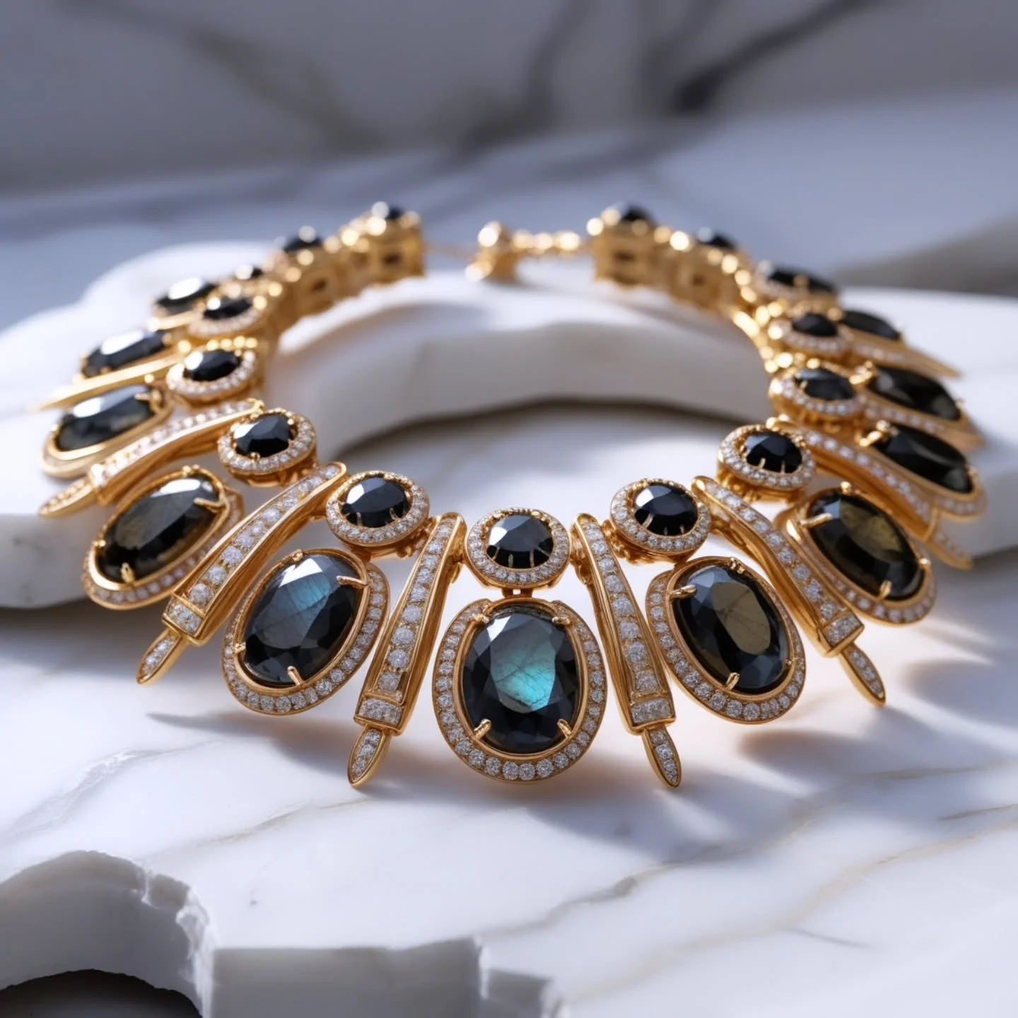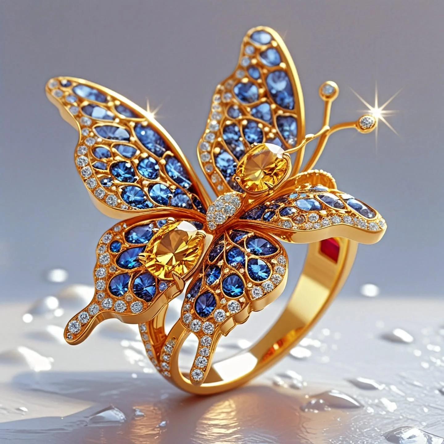 Blue zircon fire in 18K gold—Thalassor is sea-deep opulence, forged for those who never wade, only dive.